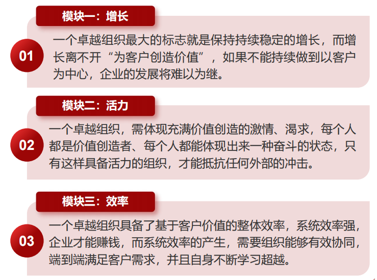 以理(lǐ)念與實戰相(xiàng)結合的(de)課程內(nèi)容和(hé)案例教學設置,系統解析建設卓越組織的→(de)三大(dà)關鍵要(yào)素:增長(cháng)、活力、效率,幫助企業(yè)家(jiā)從(cóng)本質上(shàng)認知(zhī)組織底層規律,從(cóng)機(jī≤)制(zhì)上(shàng)找到(dào)有(yǒu)效建設的(de)方法。