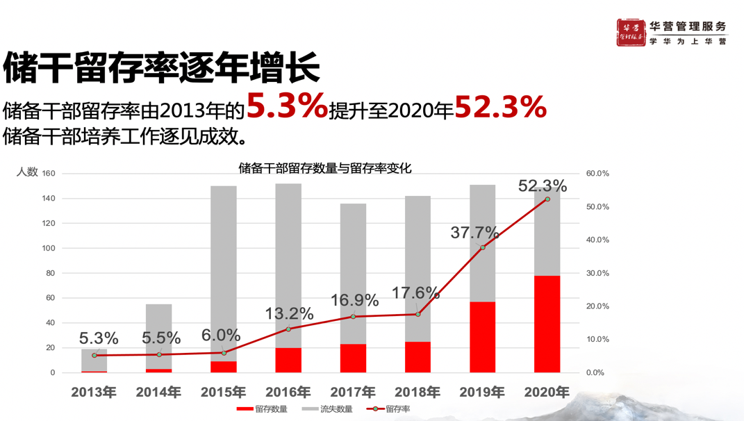 二、儲幹留存率逐年(nián)增長(cháng)、管理(lǐ)幹部年(nián)輕化(huà)