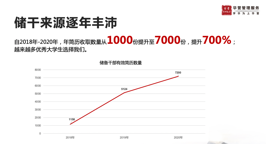一(yī)、H 公司主動走進校(xiào)園,建立高(gāo)校(xiào)合作(zuò),年(nián)簡曆收取數(shù)量從(cóng)&1000份提升至7000份,儲幹來(lái)源逐年(nián)豐沛。